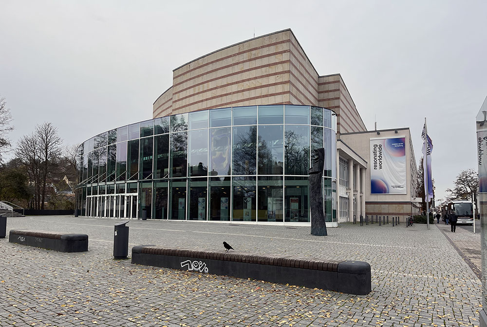 A modern concert hall where the bus met us: